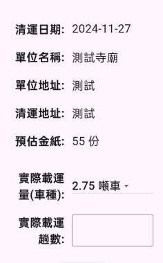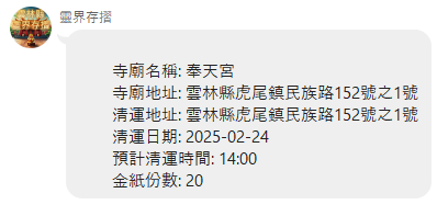 靈界存摺 APP 提供 快速預約、即時通知、歷史記錄 等多元功能,讓使用者透過簡單直覺的操作,即可輕鬆完成紙錢清運預約,無須繁瑣的電話聯繫,提高管理效率與便利性。此外,APP 內建數據記錄與分析紀錄機制,能即時統計各廟宇紙錢集中燒的累積數據,並自動計算減碳效益,使環保貢獻具體量化,為未來環保政策與碳管理提供可靠依據。透過最佳路線規劃功能,系統可依據地點與時間動態調度清運車輛,確保收運作業準時無誤,並有效減少車輛行駛里程,進一步降低能源消耗與碳排放,達到環保與效率並重的目標。